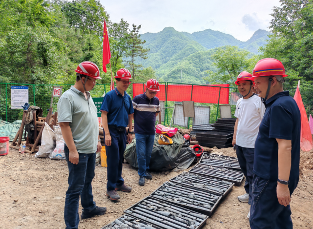 檢查組一行到達(dá)項(xiàng)目駐地后,不顧舟車(chē)勞累,首先聽(tīng)取了項(xiàng)目工作進(jìn)展匯報(bào),并對(duì)物探測(cè)量成果、鉆孔揭露情況等進(jìn)行了深入研討,同時(shí)就小秦嶺深部找礦思路及方向與項(xiàng)目組進(jìn)行了交流,為深部找礦工作提供了關(guān)鍵性技術(shù)指導(dǎo)。