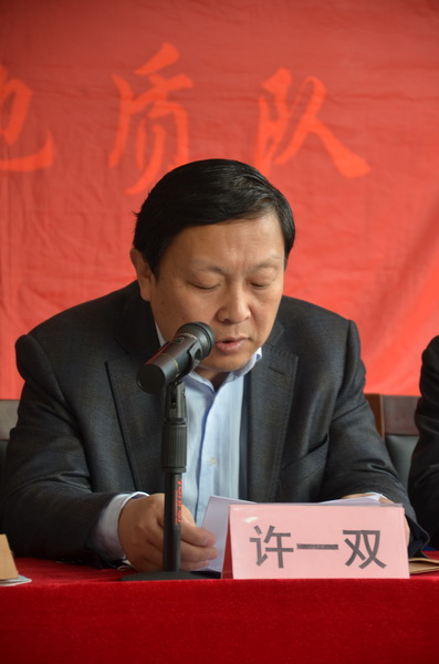 會(huì)議由隊(duì)黨委委員、隊(duì)長(zhǎng)王根寶主持。西安市國(guó)資委黨委副書(shū)記兼紀(jì)委書(shū)記許一雙、西安市國(guó)資委正處級(jí)調(diào)研員胡國(guó)強(qiáng)、省地礦總公司黨委副書(shū)記兼工會(huì)主席吳學(xué)海、省地礦總公司工會(huì)常務(wù)副主席兼黨群工作部主任王建洲、省地礦總公司黨群工作部主辦科員姚鵬等上級(jí)領(lǐng)導(dǎo)出席了大會(huì)。許一雙副書(shū)記、吳學(xué)海副書(shū)記分別在會(huì)上作了講話。