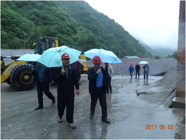 5月3日,陜西地礦集團有限公司副總經(jīng)理馬貴鎖帶領檢查組冒雨深入我隊潼關礦區(qū)檢查指導安全生產(chǎn),隊黨委書記王戰(zhàn)社陪同。