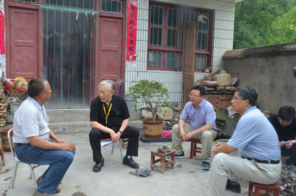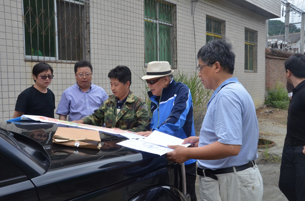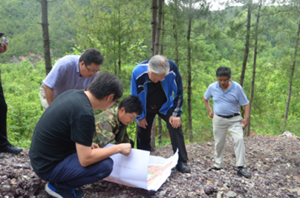 下午二點(diǎn)左右,老部長一行在劉曉東隊(duì)長和總工白和的陪同下到達(dá)洛南縣石門鎮(zhèn)項(xiàng)目部駐地,雖然年近八旬,但精神矍鑠,神采奕奕,不顧鞍馬勞頓,即讓技術(shù)人員將圖紙攤在了汽車引擎蓋上,聽取了隊(duì)長劉曉東、總工白和對(duì)商洛地區(qū)紫瑪瑙玉石礦賦存情況及全省寶玉石礦調(diào)查工作進(jìn)展的匯報(bào)。